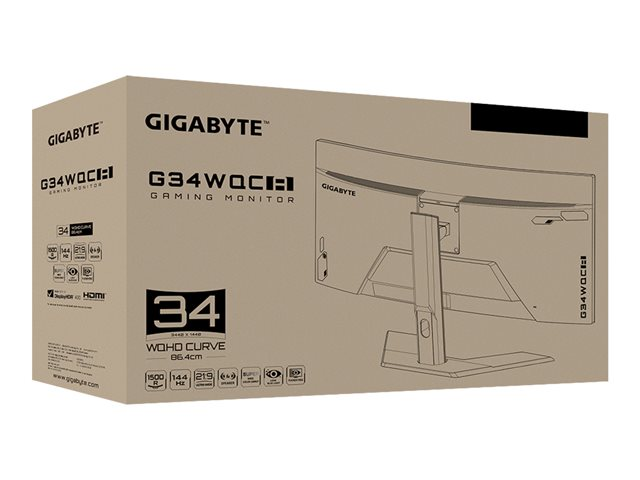 | Produktbeskrivning | Gigabyte G34WQC A - LED-skärm - böjd - 34" - 3440 x 1440 QHD @ 144 Hz - VA - 350 cd/m² - 4000:1 - DisplayHDR 400 - 1 ms - 2xHDMI, 2xDisplayPort - högtalare |