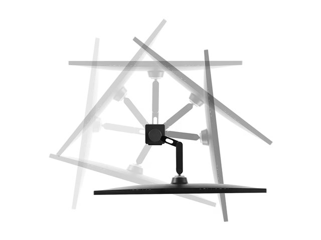 | Displaylägesjusteringar | Höjd, pivot (rotation), vridbar bas, lutning, förlänga, indragning |