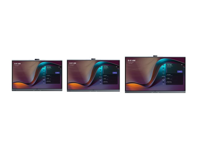 Typ av produktLED-bakgrundsbelyst, platt LCD-skärm med inbyggt interaktivt whiteboard, pekskärm (multigester), 4K kamera och array med 16 mikrofoner