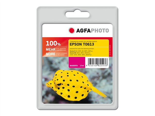 | Produktbeskrivning | AgfaPhoto - 17 ml - magenta - kompatibel - bläckpatron (alternativ för: Epson C13T06134010, Epson T0613) - för Epson Stylus D68, D88, DX3800, DX3850, DX4200, DX4250, DX4800, DX4850 |