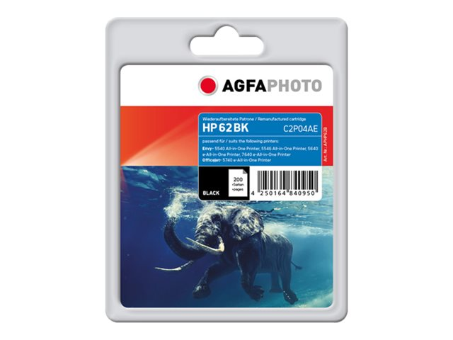 AgfaPhoto - Svart - kompatibel - bläckpatron (alternativ för: HP 62, HP C2P04AE) - för HP ENVY 55XX, 56XX, 76XX; Officejet 200, 250, 57XX, 8040