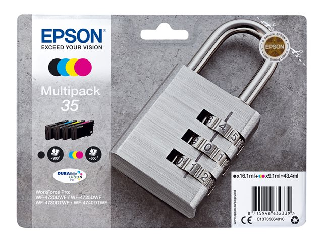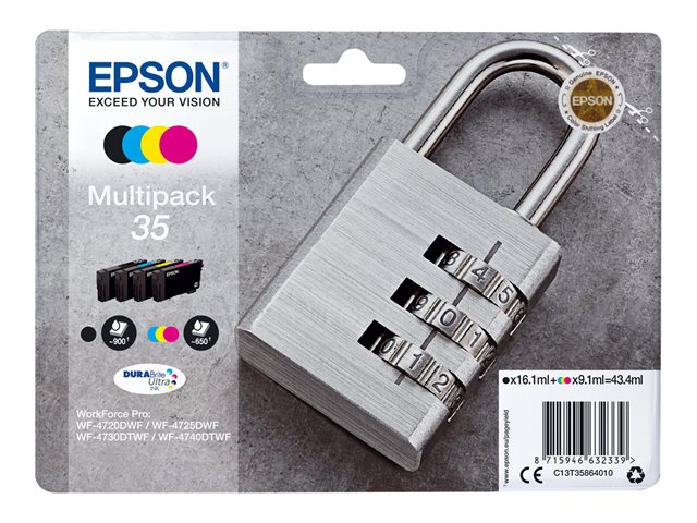 | Produktbeskrivning | Epson 35 Multipack - 4-pack - svart, gul, cyan, magenta - original - blister - bläckpatron - för WorkForce Pro WF-4720, WF-4720DWF, WF-4725DWF, WF-4730, WF-4730DTWF, WF-4740, WF-4740DTWF |