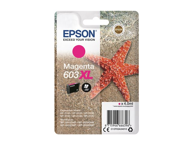 | Produktbeskrivning | Epson 603XL - 4 ml - XL - magenta - original - blister - bläckpatron - för Expression Home XP-2150, 2155, 3150, 3155, 4150, 4155; WorkForce WF-2820, 2840, 2845, 2870 |