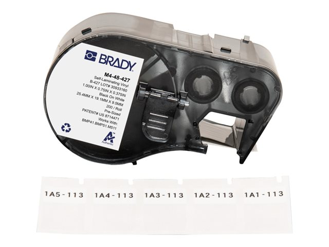 Brady B-427 - Vinyl - svart på vitt, klar - 25.4 x 19.1 mm 200 etikett (er) (1 rulle/rullar x 200 självlaminerande etiketter