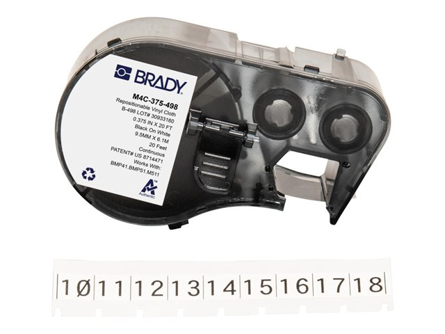 Brady CleanLift Series - Vinylduk - halvblank - omflyttbar gummihäftmassa - 185 mikron - svart på vitt - Roll (0.953 cm x 6.1 m) 1 kassett(er) etikettfack