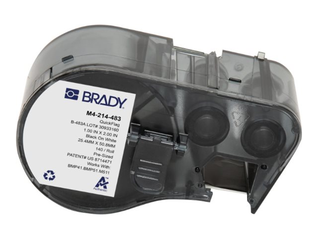 | Produktbeskrivning | Brady QuickFlag - Polyester - blank - permanent rubber ultra aggressive adhesive - 102 mikron - svart på vitt - 25.4 x 50.8 mm 140 etikett (er) (1 rulle/rullar x 140 etiketttejp - för Brady BMP41, BMP51, BMP53, M410, M510, M511 |