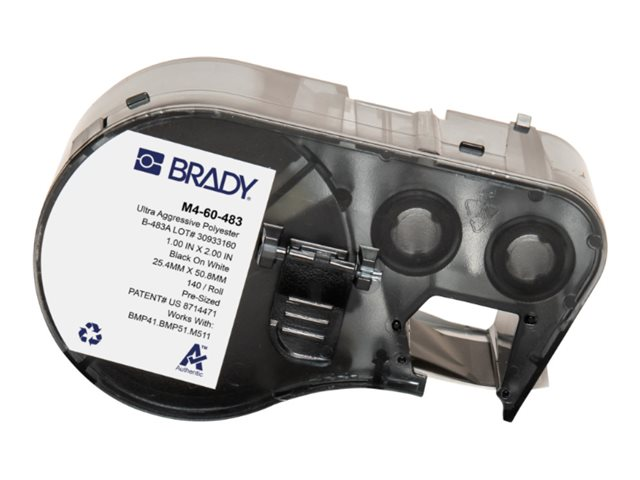 Brady ToughBond Series - Polyester - blank - permanent rubber ultra aggressive adhesive - 102 mikron - svart på vitt - 25.4 x 50.8 mm 140 etikett (er) (1 rulle/rullar x 140 etiketttejp