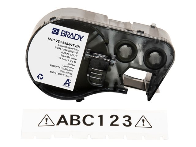 Brady - Vinyl - blank - permanent akrylhäftning - 102 mikron - svart på vitt - Roll (1.905 cm x 7.62 m) 1 kassett(er) (1 rulle/rullar färgpatron för etiketter - för Brady BMP41, BMP51, M510, M511