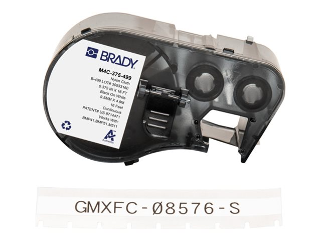 | Produktbeskrivning | Brady - Nylontyg - matt - permanent aggressivt akryllim - 166 mikron - svart på vitt - Roll (0.953 cm x 4.88 m) 1 kassett(er) färgpatron för etiketter - för Brady BMP41, BMP51, BMP53, M410, M510, M511 |