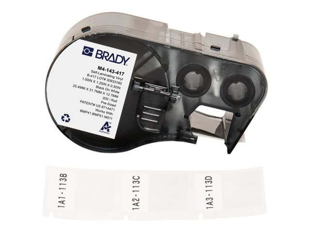 | Produktbeskrivning | Brady - Vinyl - matt - permanent akrylhäftning - 107 mikrometer - svart på vitt, transparent - 25.4 x 31.8 mm 200 etikett (er) (1 rulle/rullar x 200 självlaminerande etiketter - för Brady BMP41, BMP51, BMP53, M410, M510, M511 |