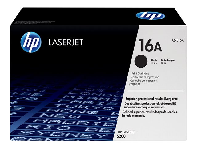 | Produktbeskrivning | HP 16A - Svart - original - LaserJet - tonerkassett (Q7516A) - för LaserJet 5200, 5200dtn, 5200L, 5200Lx, 5200n, 5200tn |