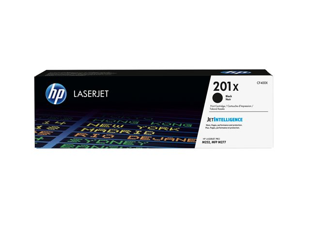 | Produktbeskrivning | HP 201X - Lång livslängd - svart - original - LaserJet - tonerkassett (CF400X) - för Color LaserJet Pro M252dn, M252dw, M252n, MFP M277c6, MFP M277dw, MFP M277n |