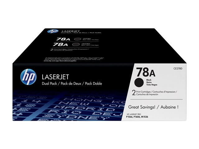 HP 78A - 2-pack - svart - original - LaserJet - tonerkassett (CE278AD) - för LaserJet Pro M1536dnf, P1566, P1606DN