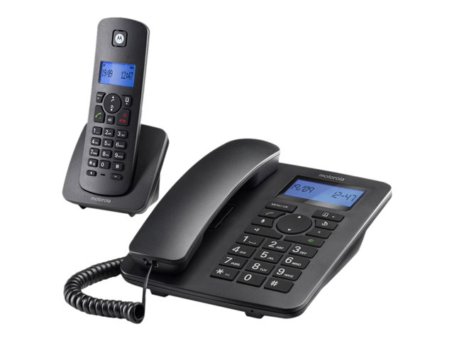 | Produktbeskrivning | Motorola C4201 Combo - Fast telefon med nummerpresentation/samtal väntar - ECO DECT\GAP - 3-riktad samtalsförmåg - svart + 1 extra handuppsättning |