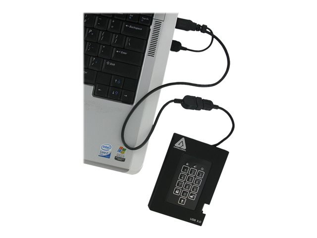 | Egenskaper | Stöttålig, vattentät, inbyggd knappsats, USB-buss, hårdvarukryptering, dammsäker, robust, VTC_teknik (Variable Time Circuit), Brute Force Self Destruct, administratörslösenord, automatisk låsning, Data at Rest Protection, enhetsåterställning, Wear Resistant Keypad, PIN-kodsautentisering, 256 bitars AES-XTS |