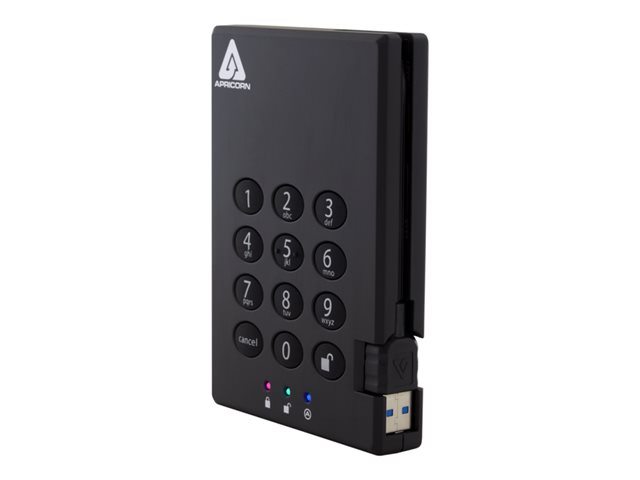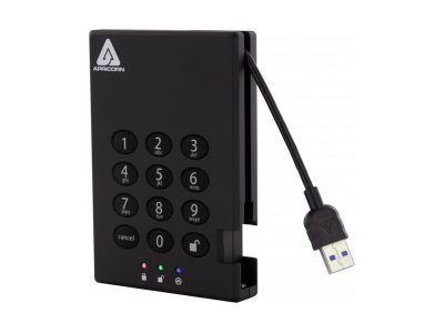 | Egenskaper | 2 skrivskyddade lägen, åsidosättningsläge för lås, självdestruktion, 4 PIN-koder för engångsåterställning, USB-buss, stöd för krypteringsfunktion, automatisk låsning, PIN-kodsautentisering, framtvingad administratörsregistrering, framtvingad användarregistrering, inbyggd knappsats, omstartbar, Brute Force Protection, PIN-koder för oberoende användare och admin, stöttålig, vibrationstålig, 256 bitars AES |