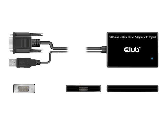 Club 3D - Videokort - HD-15 (VGA), USB (endast ström) hane till HDMI hona - 60 cm - skärmad - stöd för 1080p