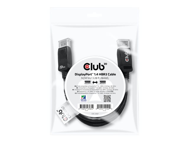 Club 3D - DisplayPort-kabel - DisplayPort (hane) till DisplayPort (hane) - DisplayPort 1.4 - 1 m - svart
