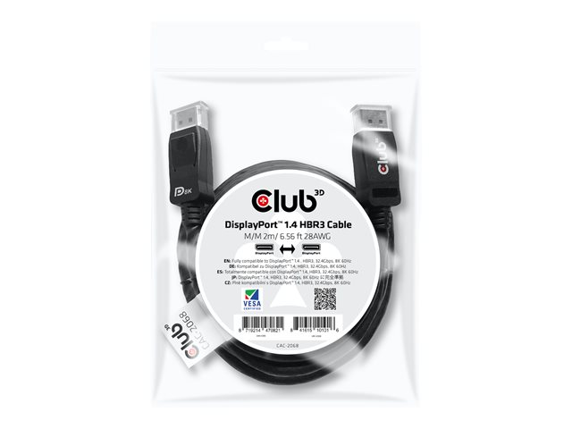 Club 3D - DisplayPort-kabel - DisplayPort (hane) till DisplayPort (hane) - DisplayPort 1.4 - 2 m - svart