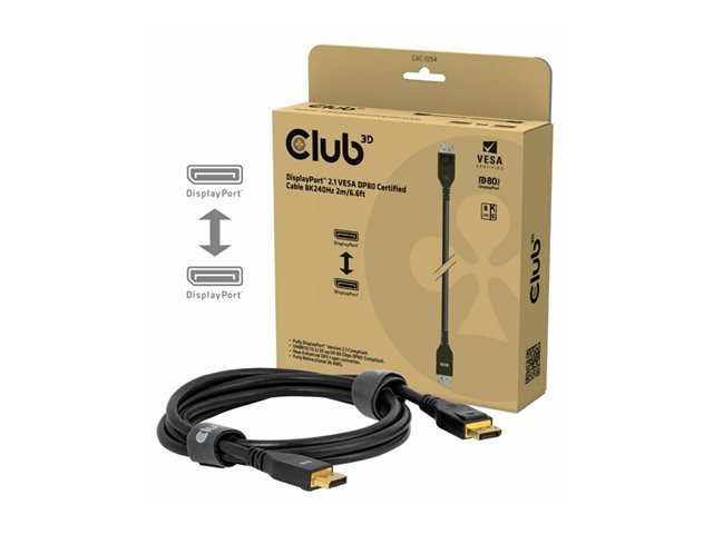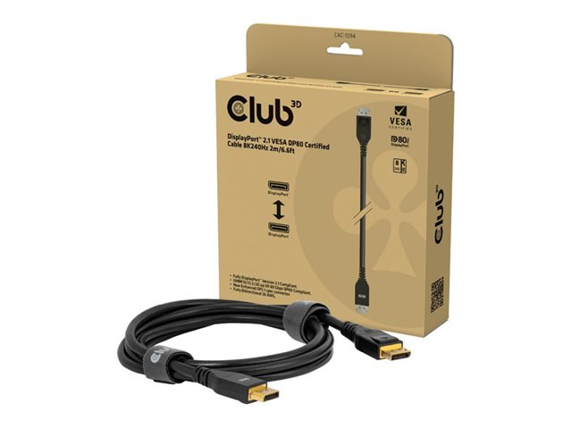 | Egenskaper | VESA DP80-certifierad, 8K240Hz stöd, 10K60Hz stöd, klammer, EMI-skydd, HDR-stöd, 32 ljudkanaler, dubbelriktad, Forward Error Correction, Display Stream Compression (DSC), Ultra High Bit Rate 10 (UHBR10), Ultra High Bit Rate 13.5 (UHBR13.5), 80 Gb datahastighet |