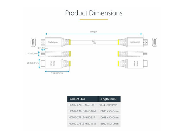 | Produktbeskrivning | StarTech.com 10m (32.8ft) Active High Speed HDMI Cable, 4K60Hz - Hög hastighet - HDMI-kabel med Ethernet - HDMI hane till HDMI hane - 10 m - skärmad - svart - aktiv, 2K144Hz stöd, 4K60Hz UHD-stöd, HDR10-stöd |