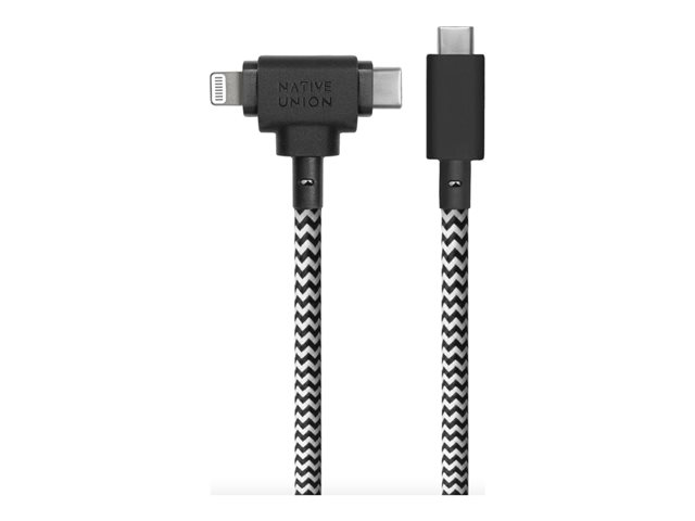 Native Union Belt Cable Duo - Lightning-kabel - 24 pin USB-C hane till Lightning, 24 pin USB-C hane - 1.5 m - zebra - USB Power Delivery (60W)