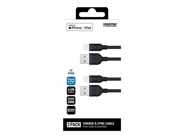 Unisynk - Lightning-kabel - Lightning hane till USB hane - 50 cm (paket om 2)