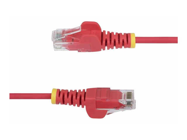 StarTech.com - Patch-kabel - RJ-45 (hane) till RJ-45 (hane) - 25 cm - 3.6 mm - UTP - CAT 5/5e/6 - IEEE 802.3bt - halogenfri, hakfri, rak - röd