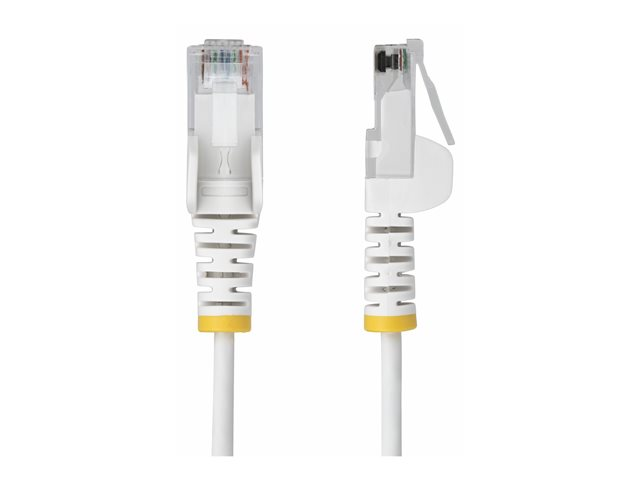 StarTech.com - Patch-kabel - RJ-45 (hane) till RJ-45 (hane) - 25 cm - 3.6 mm - UTP - CAT 5/5e/6 - IEEE 802.3bt - halogenfri, hakfri, rak - vit