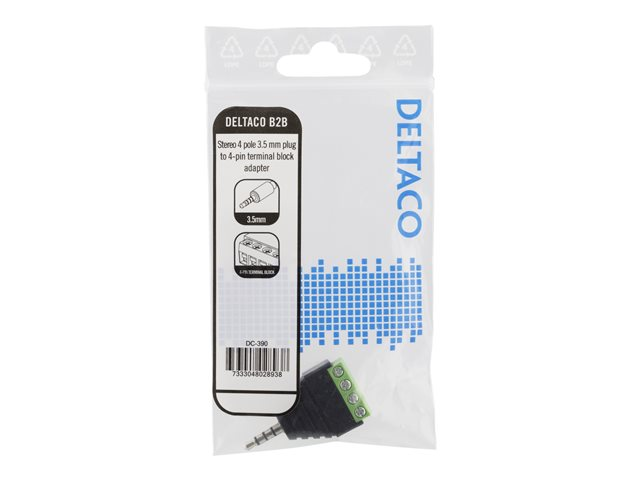 DELTACO DC-390 - Kontakt till terminalblock - 4-poligt minijack hane till 4 stifts terminalblock hona - 1.3 m - svart/grön