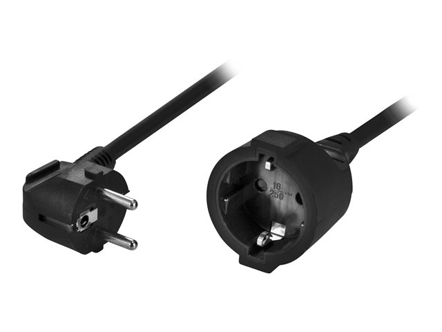 DELTACO DEL-112E - Förlängningskabel för ström - power CEE 7/7 (hane) till CEE 7/4 (hona) - 10 m - rak kontakt, 90° anslutning - svart