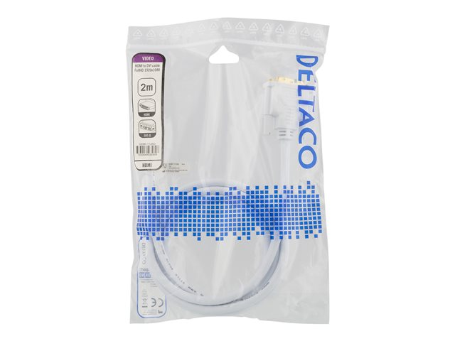 DELTACO HDMI-112AD - Adapterkabel - HDMI hane till DVI hane - 2 m - vit - stöd för 1080p