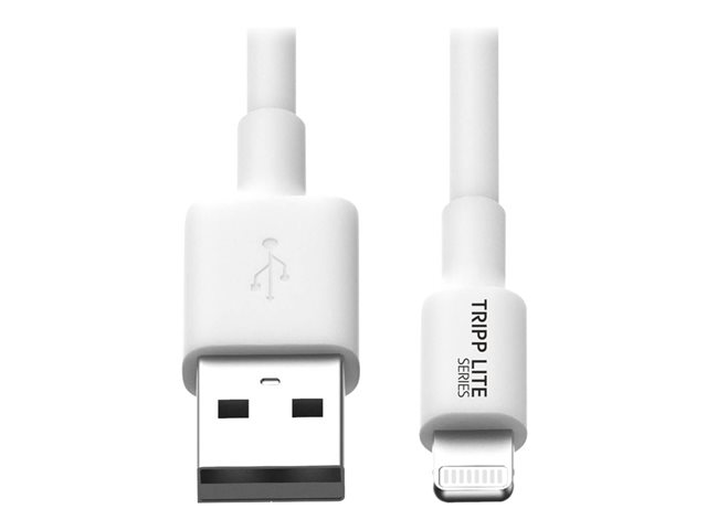 Produktbeskrivning | Eaton Tripp Lite Series USB-A to Lightning Sync/Charge Cable (M/M) - MFi Certified, White, 3 ft. (0.9 m) - Data-/strömkabel - USB hane till Lightning hane - 1 m - vit - för P/N: CSCXB16USB, CSCXS16USB, MR229USB, MR248USBG, U280-001-C2, U442-DOCK30 |
