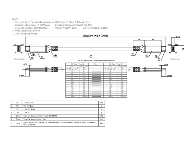 Vision - USB-kabel - USB-C (hane) till USB-C (hane) - USB 3.2 - 3 A - 5 m - USB-strömförsörjning (100W), 4K60Hz stöd, upp till 20 Gbps dataöverföringshastighet - svart