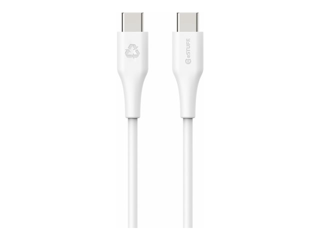 | Produktbeskrivning | eSTUFF INFINITE - USB-kabel - 24 pin USB-C (hane) rak till 24 pin USB-C (hane) rak - USB 2.0 - 50 cm - 100 % återvunnen plast, USB-C Power Delivery (60W) - vit |