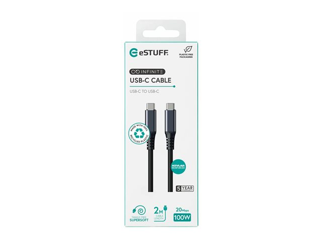 eSTUFF INFINITE - USB-kabel - 24 pin USB-C (hane) till 24 pin USB-C (hane) - USB 2.0 - 2 m - 100 % återvunnen plast - vit