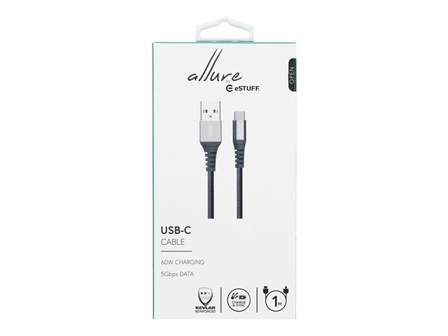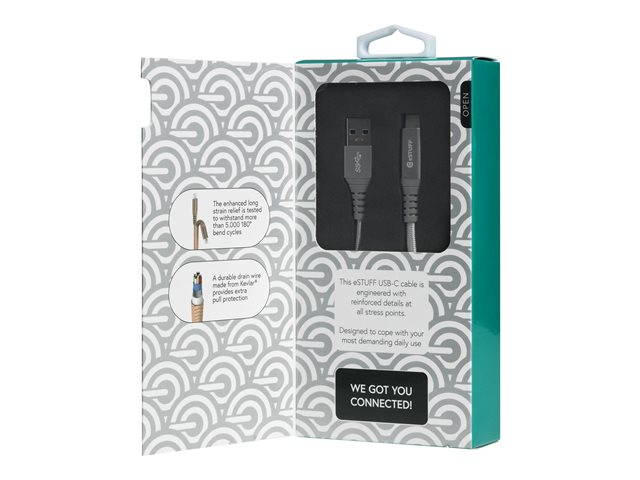 eSTUFF - USB-kabel - 24 pin USB-C (hane) till USB (hane) - USB 3.1 Gen 1 - 5 - 20 V - 3 A - 1 m - grå