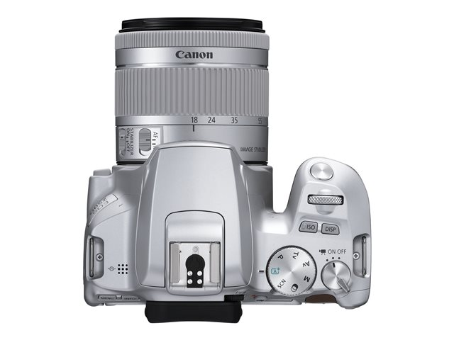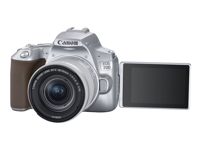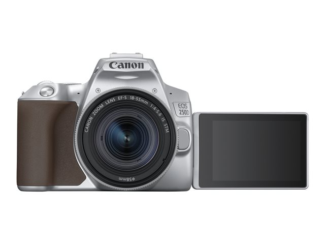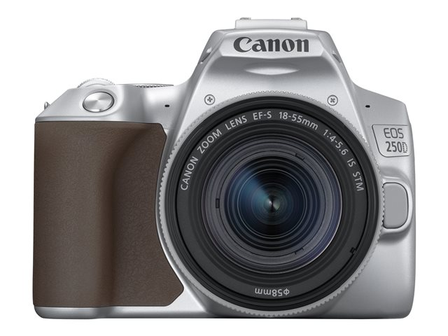 | Produktbeskrivning | Canon EOS 250D - Digitalkamera - SLR - 24.1 MP - APS-C - 4 K / 25 fps - 3x optisk zoom EF-S 18-55 mm IS STM lins - Wi-Fi, Bluetooth - silver |