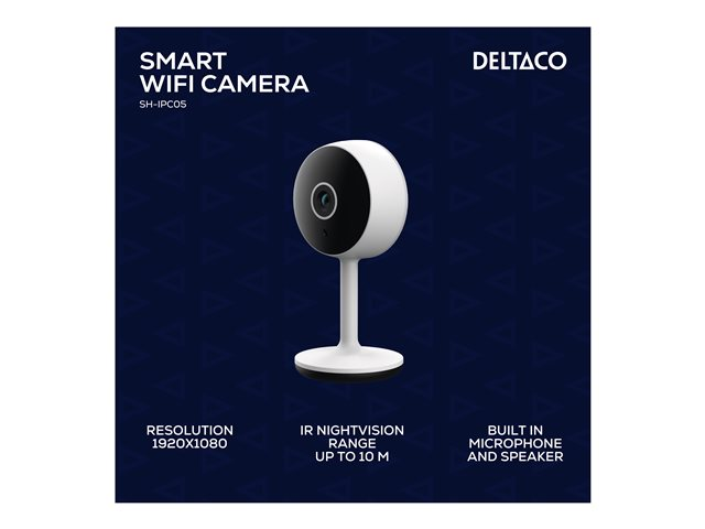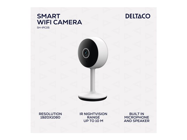 | Produktbeskrivning | DELTACO SH-IPC05 - Nätverksövervakningskamera - färg (Dag&Natt) - 2 MP - 1920 x 1080 - ljud - trådlös - Wi-Fi - DC 5 V |