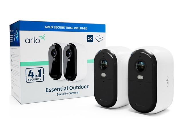 | Produktbeskrivning | Arlo Essential - Nätverksövervakningskamera - inomhusbruk, utomhusbruk - vädertålig - färg (Dag&Natt) - 4 MP - 2560 x 1440 - ljud - trådlös - Wi-Fi (paket om 2) |