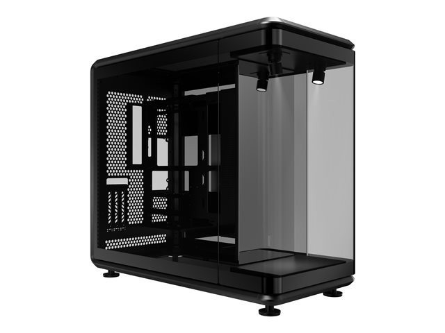 Kabelhanteringssystem (110 mm fritt utrymme), stöd för bakre anslutning av moderkort, Open Frame-design, frampanel med spegel, tredelat panoramaglas, 2 ARGB strålkastare