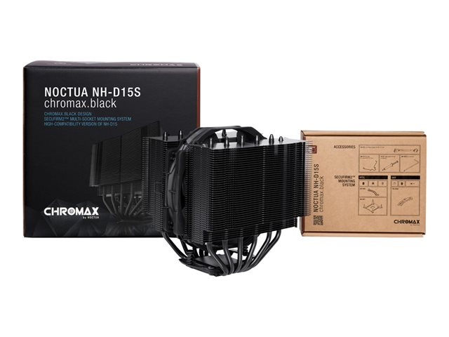 | Produktbeskrivning | Noctua chromax NH-D15S - Processorkylare - (för: LGA1851, LGA1700, LGA1200, LGA1156, LGA1155, LGA1151, LGA1150, AM5, AM4, AM3+, AM3, AM2+, AM2, FM2+, FM2, FM1) - kopparbas och nickelpläterade aluminiumprofiler - 140 mm - svart |