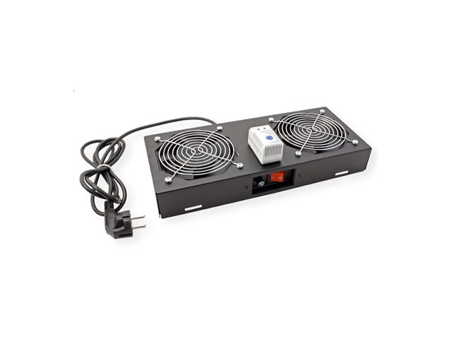 | Produktbeskrivning | Roline - Rackfläkt - 2 fans - takmonterbar, väggmontering - gagatsvart, RAL 9005 - 19" - för P/N: 26.21.0181, 26.21.0182, 26.21.0183, 26.21.0184, 26.21.0186, 26.21.0187, 26.21.0188 |