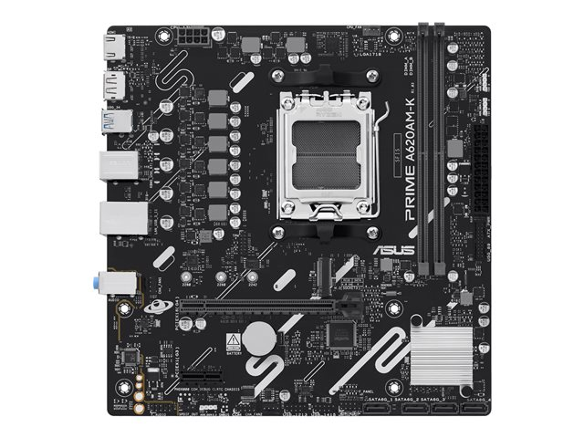 | Produktbeskrivning | ASUS PRIME A620AM-K - Moderkort - micro ATX - Socket AM5 - AMD A620A Chipuppsättning - USB 3.2 Gen 1 - Gigabit LAN - inbyggda grafiken (CPU krävs) - HD-ljud (8 kanaler) |