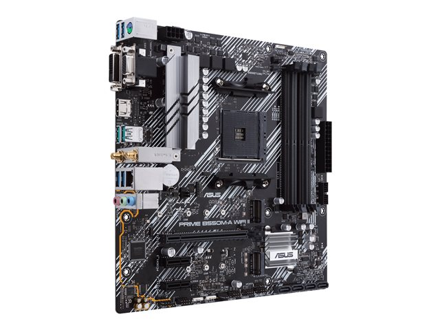 | Produktbeskrivning | ASUS PRIME B550M-A WIFI II - Moderkort - micro ATX - Socket AM4 - AMD B550 Chipuppsättning - USB 3.2 Gen 1, USB 3.2 Gen 2 - Gigabit LAN, Wi-Fi 6, Bluetooth - inbyggda grafiken (CPU krävs) - HD-ljud (8 kanaler) |