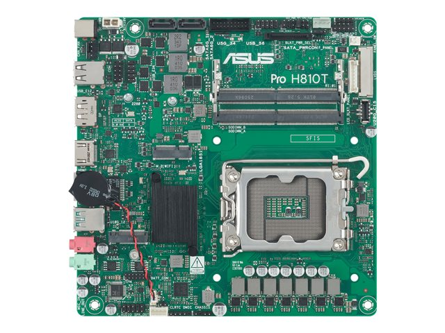 | Produktbeskrivning | ASUS PRO H810T-CSM - Moderkort - Thin mini ITX - LGA1851-uttag - H810 Chipuppsättning - USB-C 3.2 Gen 2x2, USB 3.2 Gen 2, USB 3.2 Gen 1 - Gigabit LAN - inbyggda grafiken (CPU krävs) - HD-ljud (8 kanaler) - ASUS Corporate Stable Model (CSM) |