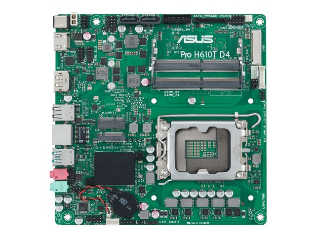 | Produktbeskrivning | ASUS Pro H610T D4-CSM - Moderkort - Thin mini ITX - LGA1700-uttag - H610 Chipuppsättning - USB 3.2 Gen 1, USB 3.2 Gen 2 - Gigabit LAN - inbyggda grafiken (CPU krävs) - HD-ljud (8 kanaler) |