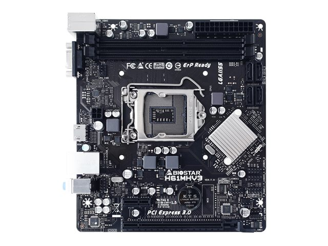 | Produktbeskrivning | Biostar H61MHV3 - Moderkort - micro ATX - LGA1155-uttag - H61 Chipuppsättning - Gigabit LAN - inbyggda grafiken (CPU krävs) - HD-ljud (6 kanaler) |