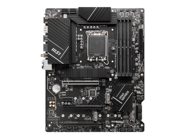 | Produktbeskrivning | MSI PRO Z790-P WIFI - Moderkort - ATX - LGA1700-uttag - Z790 Chipuppsättning - USB-C Gen 2x2, USB 3.2 Gen 2, USB 3.2 Gen 1, USB-C Gen2 - 2.5 Gigabit LAN, Wi-Fi 6, Bluetooth - inbyggda grafiken (CPU krävs) - HD-ljud (8 kanaler) |