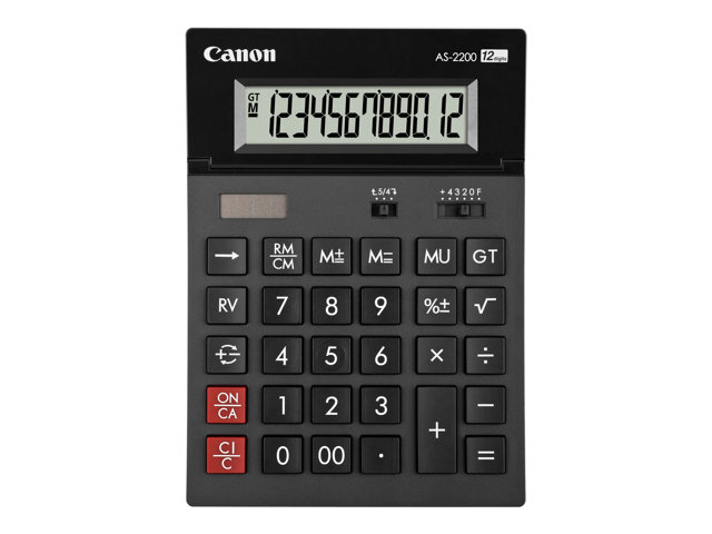 | Produktbeskrivning | Canon AS-2200 - Skrivbordskalkylator - 12 siffror - solcellspanel, batteri - mörkgrå |